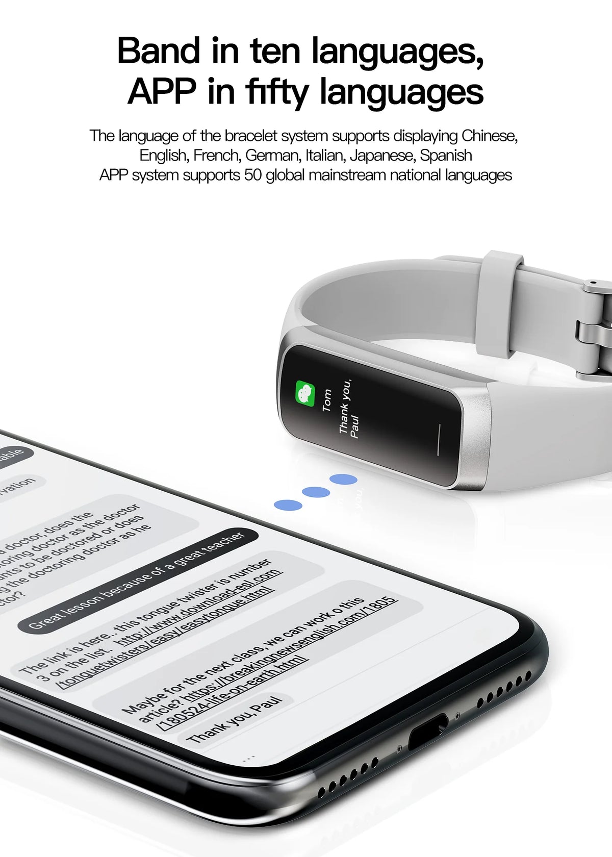 Real-time message, call, and app notifications on your wrist